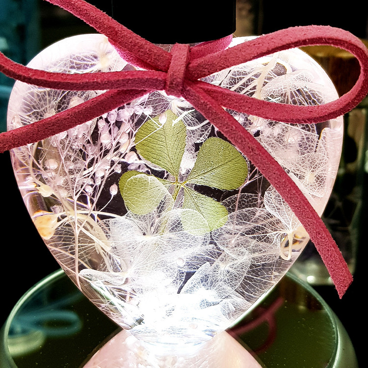 four-leaf clover herbarium heart bottle